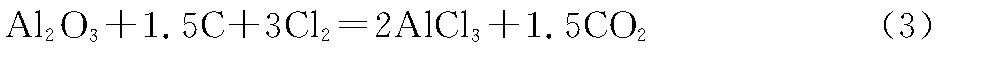 氧化鋁法是以氧化鋁、氯氣及碳三者為原料共同反應(yīng)制取無(wú)水三氯化鋁。國(guó)外研究者20世紀(jì)60年代后期曾對(duì)氧化鋁法制無(wú)水三氯化鋁的反應(yīng)機(jī)理進(jìn)行了研究, 他們認(rèn)為氧化鋁法制無(wú)水三氯化鋁的反應(yīng)式為: